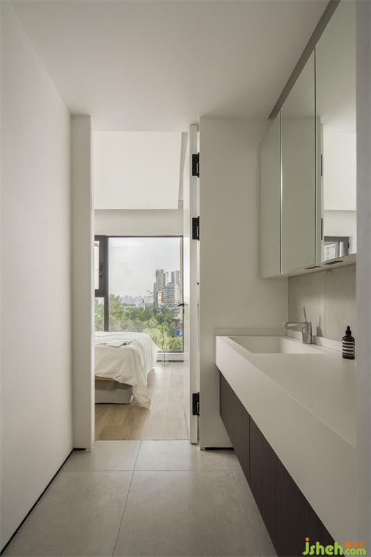 主臥自然采光較強(qiáng),搭配灰色棉麻床品降低光線帶來的炙熱感。