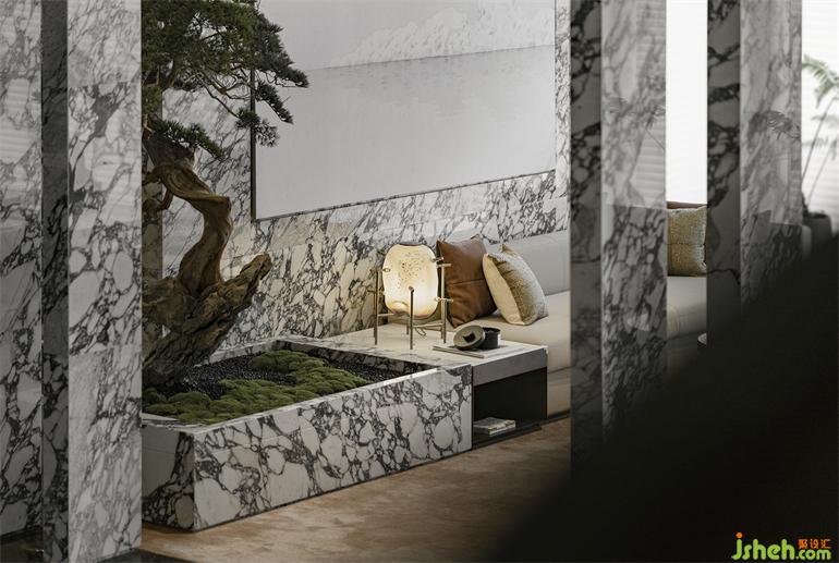 VIP室則更突出私享感,張力十足的藝術(shù)品在私密的空間中形成強大氣場,美學(xué)館設(shè)計如詩社般氤氳的空間氛圍自帶高階的沉靜。來自揚州的精致工藝在此被藝術(shù)化地呈現(xiàn):印刷雕版、絹布刺繡,還有詩歌的在地性都化作設(shè)計的詞匯,被寫進這首短詩里。