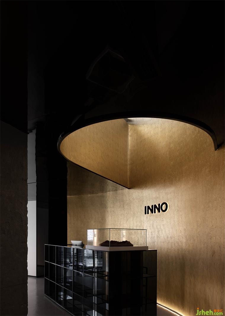 金箔在此作為民族文化符號登場。它隨著破開的黑色天花板旋轉(zhuǎn)上延,酒店設(shè)計(jì)宛若初現(xiàn)的明媚日光,在宇宙序次中營造出全新的視野廣度。明暗的對比強(qiáng)化了本體自帶的文化質(zhì)感,也在與空間的藝術(shù)重組中,豐富了情感與視覺的體驗(yàn)。
