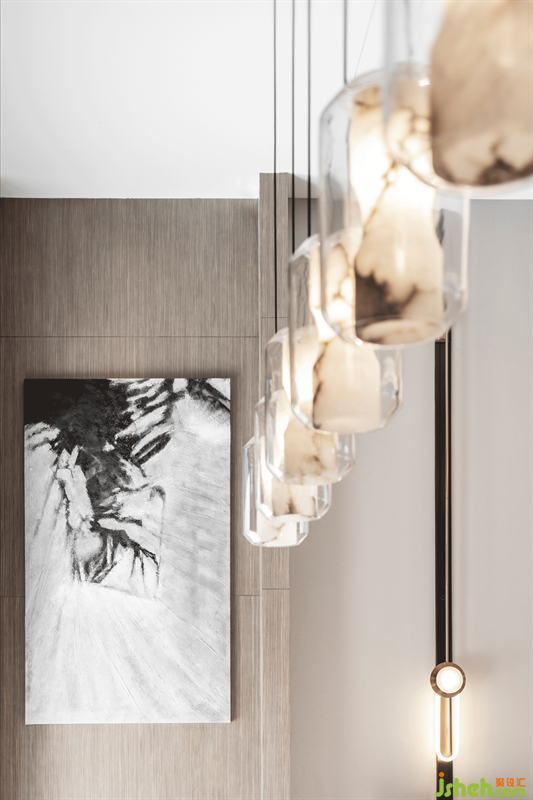 書吧的另側(cè),一組“破繭成材”的獨立藝術(shù)裝置,象征著人們對于知識的專注和渴求。一人一書,一簡成澤,時間、空間、文化,匯聚在思想精神的領(lǐng)域里,所有一切設(shè)計美學(xué)自然而然成為展現(xiàn)“文府甲第”項目氣質(zhì)的形式。