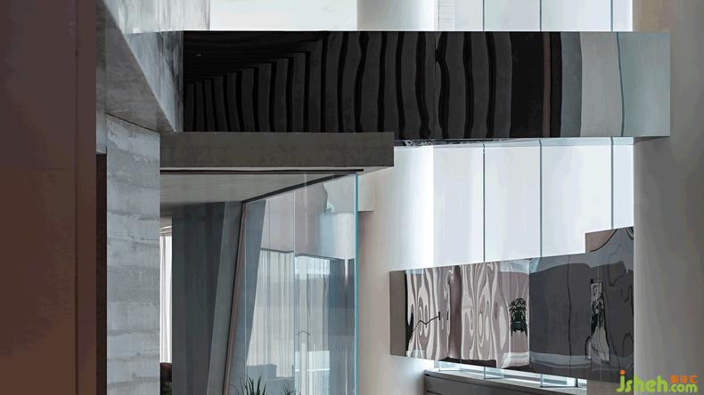 視線在三層豁然開朗,這里被打造成一個凌空的世界,仿佛小說中那如夢似幻的空間,人們可以融化在遠(yuǎn)方的藍(lán)天中,各種反射讓景物交疊、呼應(yīng),視覺上的奇幻感讓人目不暇接。