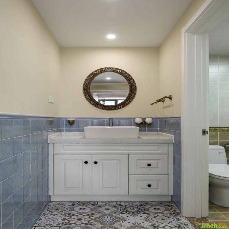 室內(nèi)設(shè)計師用藍(lán)色磚與黃色防水涂料的結(jié)合,材質(zhì)與顏色互相變換又互相融合