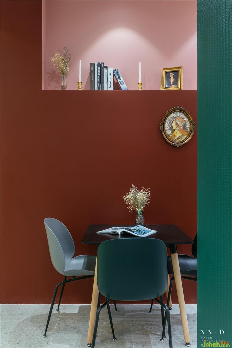 過道背景墻設(shè)計多層次空間,拱門洞的造型設(shè)計,很好的和對面的拱門隔斷相互融合,不單調(diào)的同時把顏色做區(qū)分,收口面也很好的得到解決。