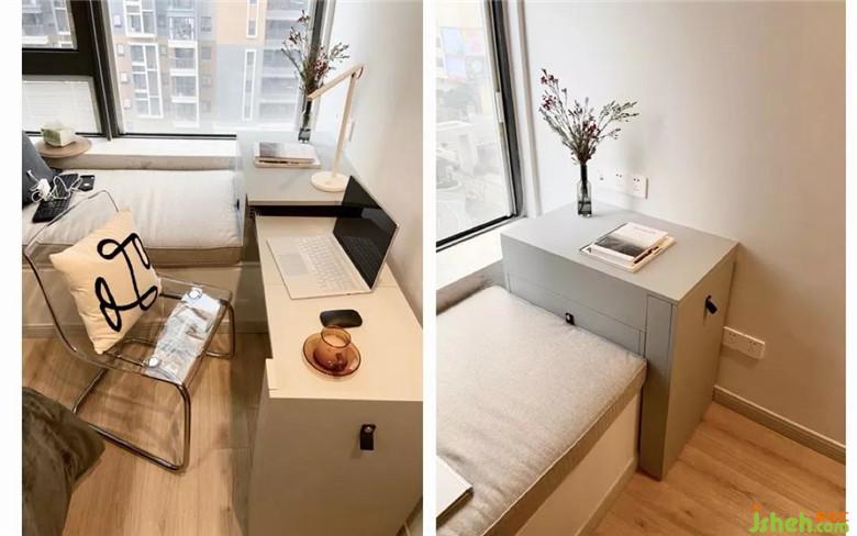 裝修公司選用次臥家具雖少,卻布局輕巧,富有小情調(diào),床、桌、柜安排得宜,不浪費(fèi)半點(diǎn)空間。