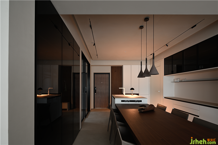 視角移動(dòng),向空間中心延伸,功能齊全、美感簡(jiǎn)雅的餐邊柜,師惠花苑裝修設(shè)計(jì)正表達(dá)著“平靜的奢華”與“精致的簡(jiǎn)單”。