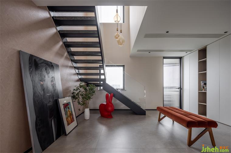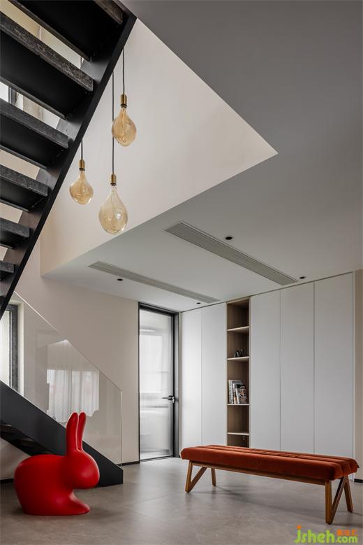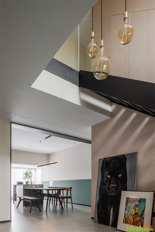 汲取玻璃的通透美感與波浪肌理的舒緩氣質(zhì),抒發(fā)溫柔輕盈的詩(shī)情。狀欲滴落的吊燈將光的純粹之力傳遞給潮酷擺件,復(fù)式裝修設(shè)計(jì)延展至絲絨座凳,勾勒出穩(wěn)定構(gòu)圖,豐富了視覺享受。