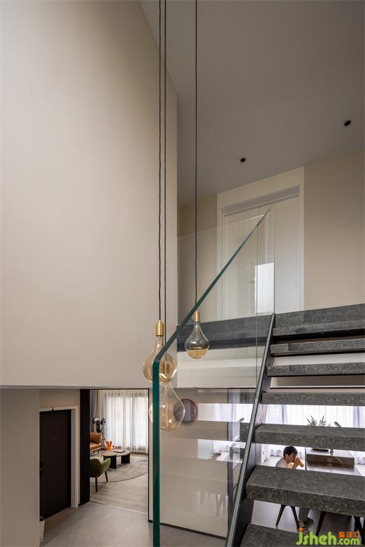 結(jié)構(gòu)折轉(zhuǎn),光影變幻,創(chuàng)造了新鮮有趣的空間互動(dòng),根植藝術(shù)的愉悅性與空間的穩(wěn)定性,以連綿的黑串聯(lián)上下維度。圍欄的剔透扭轉(zhuǎn)了昏暗氣氛,激活了明朗的格調(diào)。