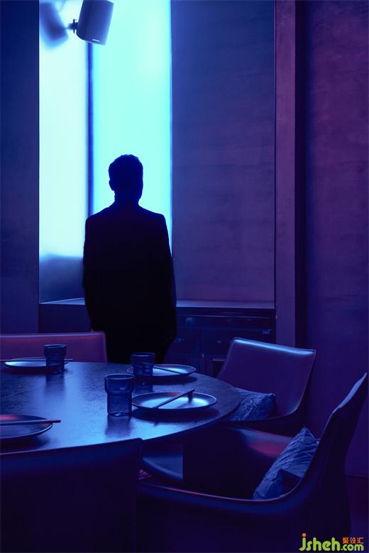 中間散臺區(qū),其內(nèi)在的情緒決定了形態(tài)外延與向上的張力,這種張力是制造場域的聚合的一種力量,藝術餐廳設計與其環(huán)繞更激進的狀態(tài)激發(fā)用餐者流露出放開、社交甚至激昂的情緒意識。吧臺區(qū)域暈染傳達的細微的光影,也揭露出窺探與空間的互動的感受。