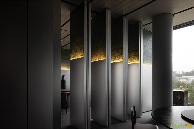 通道空間作為一個(gè)人停留時(shí)間最短的空間,在深圳餐廳設(shè)計(jì)中很容易被忽視,這些灰空間沒(méi)有具有強(qiáng)烈的功能性,反而是感性設(shè)計(jì)表達(dá)的最佳方式,在通道的梳理中,一直無(wú)限度、空洞、自由的狀態(tài)創(chuàng)造了曲徑通幽的東方美學(xué)。