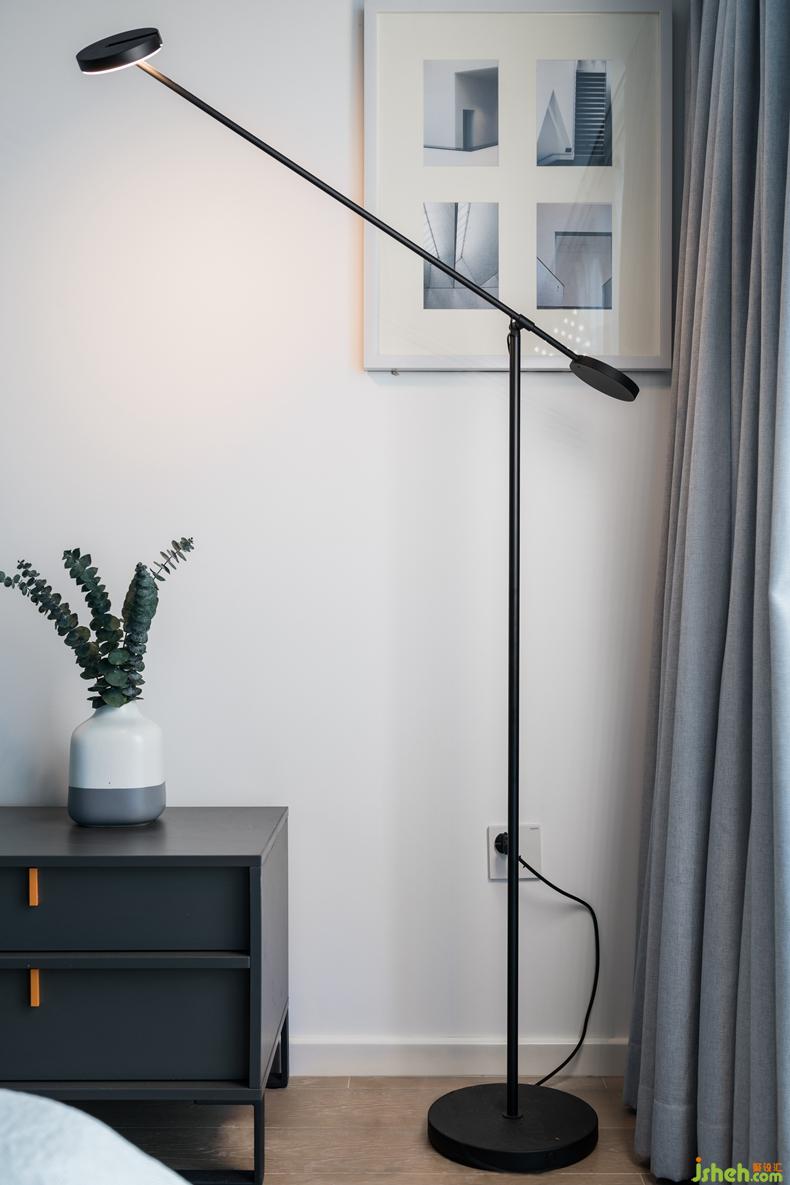 一般情況下,壁畫的懸掛位置于床頭正中間對應(yīng)的墻壁上。但設(shè)計(jì)師為了使空間達(dá)到視覺上的均衡,結(jié)合了書桌與倒凸窗的距離,在床頭柜的上方懸掛了兩幅精心挑選的小壁畫持恒。壁畫框采用黑色包邊在突顯質(zhì)感的同時(shí)對空間的整體效果上也起到了沉淀的作用。