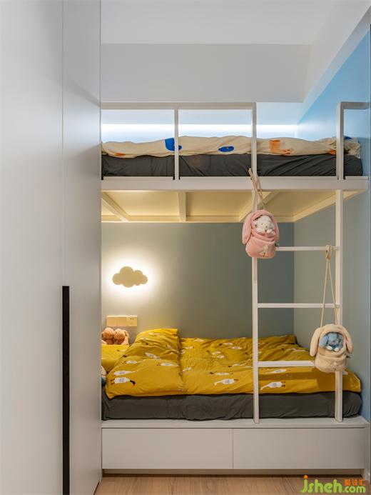 小朋友最愛的上下鋪也在兒童房得到了實(shí)現(xiàn),同時(shí)擁有了大容量的儲(chǔ)物柜和寬敞的學(xué)習(xí)區(qū),家裝設(shè)計(jì)沉浸在自己小小的世界里,肆意玩耍,這里就是就是她們的"童話王國(guó)"。