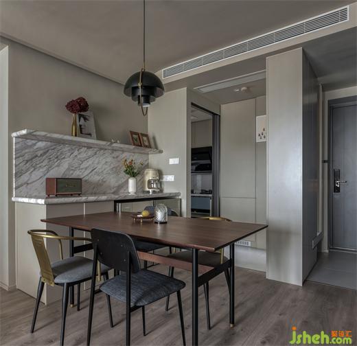 餐廳由一組來(lái)自意大利的seletti的星空掛鉤點(diǎn)綴其中,不規(guī)則的排列組合,裝修公司好似浩瀚宇宙中分布的各個(gè)星球。