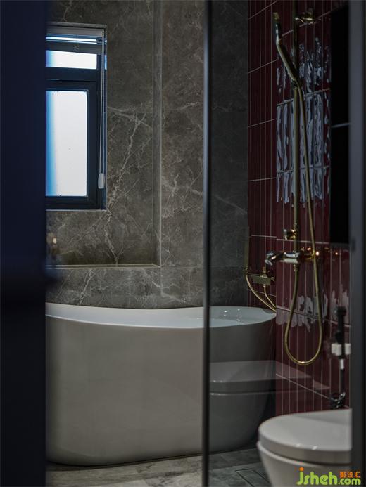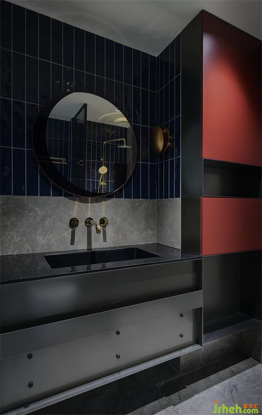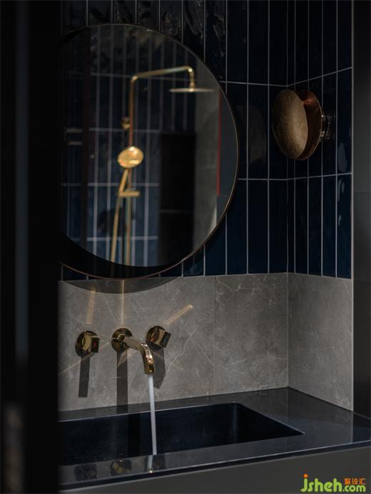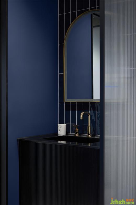 被濃郁色彩包裹的洗手間,搭配上金色的衛(wèi)浴,顯得尤為精致,這些小細(xì)節(jié)使得生活的幸福感被無(wú)限放大。