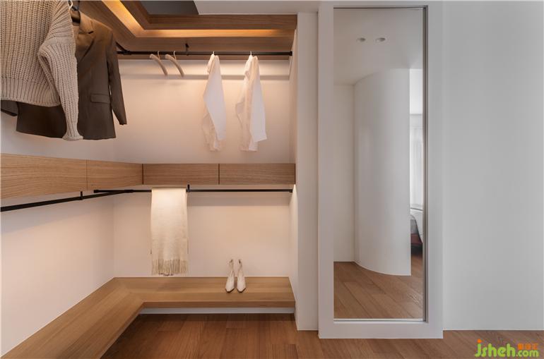 更衣室則利用了房間轉(zhuǎn)角的畸零處,裝修設(shè)計(jì)劃分出一間獨(dú)立精巧的空間,L型格局沿著墻面布局,增加衣物的收納量,平日上班與假日常穿的衣物掛放在這里,趕出門時(shí)順手拿超方便,再放一面全身更衣鏡,每天都亮麗的出門。臥房-更衣室-衛(wèi)浴三者順暢的動(dòng)線,梳洗完就更衣,不會(huì)打擾到在臥室休息的另一半。