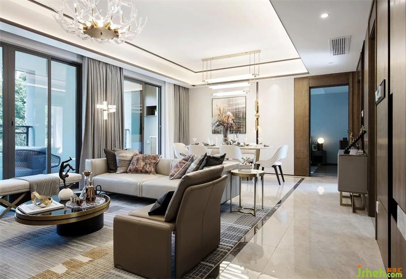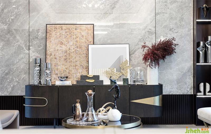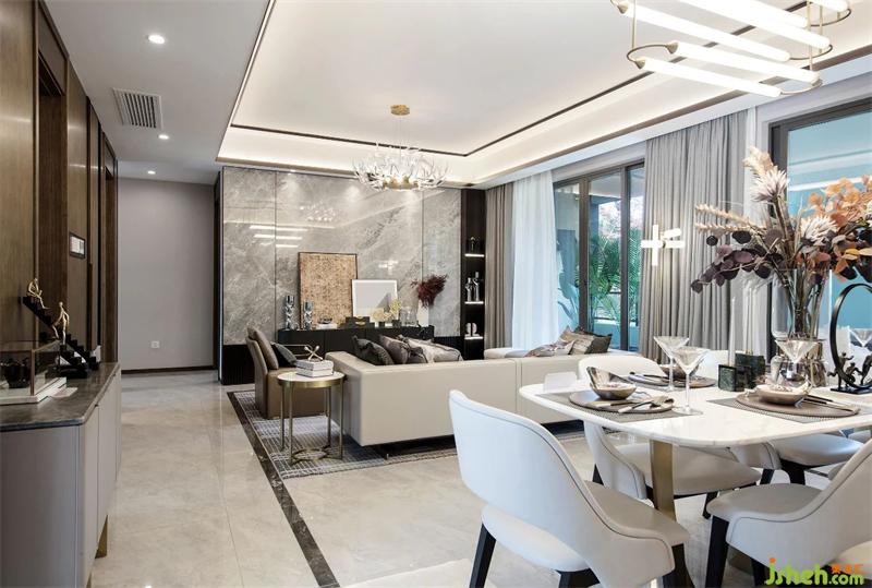 武漢樣板房設(shè)計(jì)造型與細(xì)節(jié)低調(diào)地詮釋出對(duì)生活的熱愛(ài)。線面結(jié)合的天花有妙不可言的靈動(dòng)感,自然肌理的大理石墻面;精致的黃銅烤漆茶幾、紋理豐富的地毯、紳士品格的皮革沙發(fā)與空間相互呼應(yīng),增添生活儀式感。