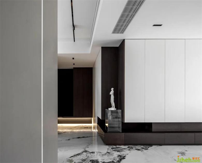 在寬闊的空間內(nèi),雖沒有復(fù)雜的飾品與艷麗的色彩,但各個(gè)角度上躍豪宅設(shè)計(jì)均有線條延伸、交錯(cuò),各個(gè)體塊相互連接,給予空間豐盈而不諂媚的觀感,素雅、簡(jiǎn)約、自我。