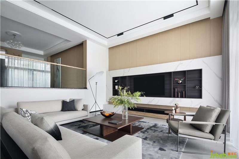 休閑廳為客廳的補充空間,位于樓梯平臺旁,沉穩(wěn)質感的書柜鋪滿整面墻,如源頭活水般浸潤著整個空間,正是“書卷多情似故人,晨昏憂樂每相親”。