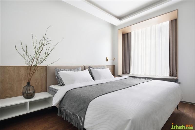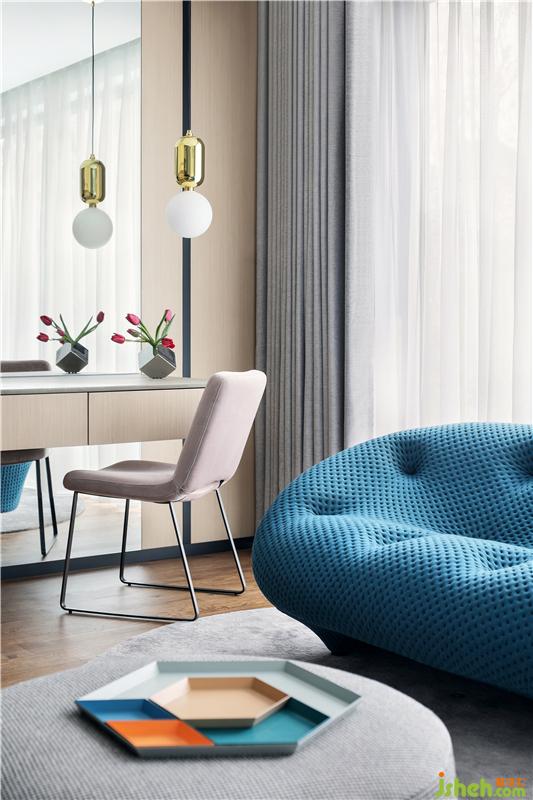 窗邊設(shè)有女主人的梳妝休閑區(qū),坐擁開闊視野,休憩之余,慵懶地窩在沙發(fā)里,或釋卷而出神,或看夕陽西斜,或聽細(xì)雨入眠。