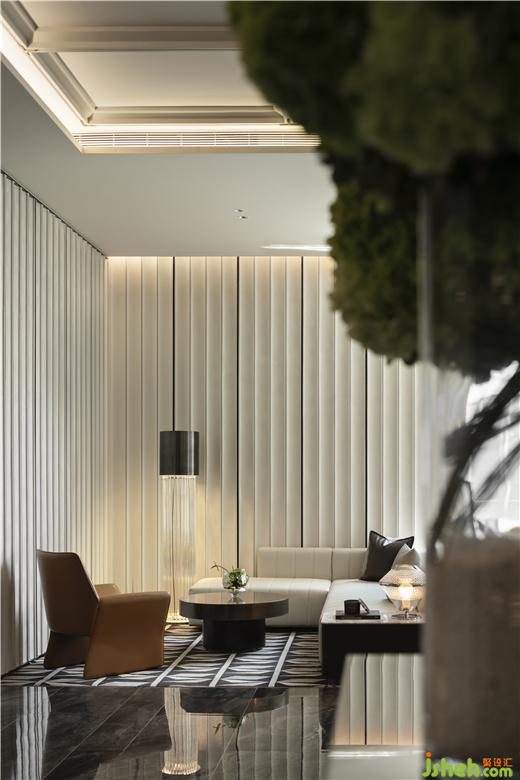 靜坐于此,感受空間賦予的停頓、純粹、安逸。低奢的質(zhì)感傳遞出舒適的視覺訊息,展示中心設(shè)計融合酒店式的放松,營造簡約而精致的感受。