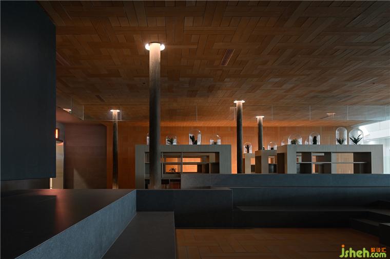 在空間中央,機(jī)場館設(shè)計(jì)師采用地面局部墊高和中心區(qū)域加高與下沉的方式,將曬谷場的概念幻化成為開放式講堂區(qū)。