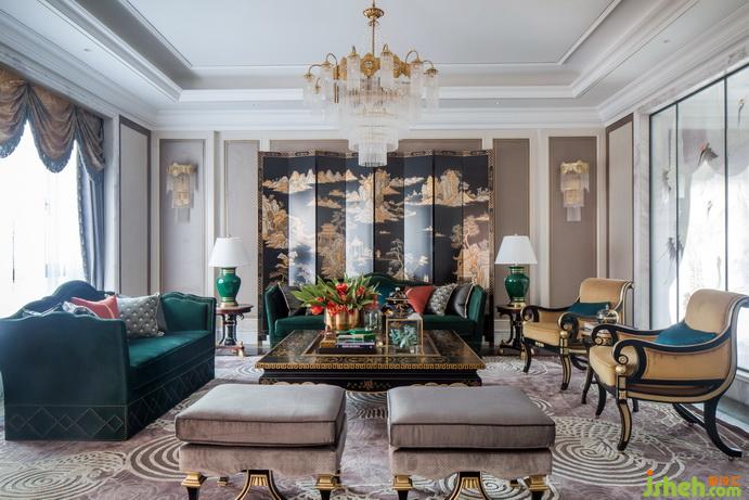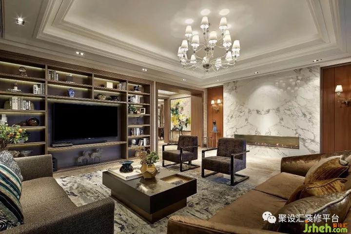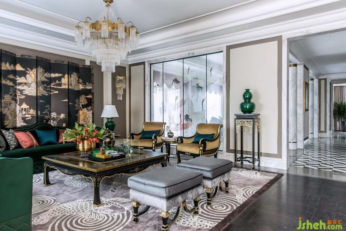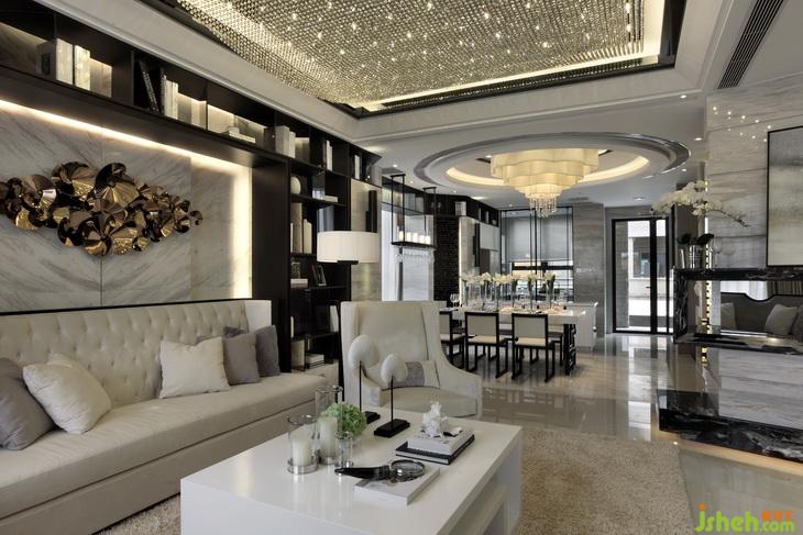 為了讓空間量體就像一件雕塑品,從空間貫穿到家具,例如以線條雕琢的天花線板、大理石地板、墻垣,當(dāng)代經(jīng)典、線條簡潔的沙發(fā),直線傾泄宛如銀絲瀑布的水晶燈,精巧的多寶格開放式儲(chǔ)柜,直線拼花的藝術(shù)性地毯,而除了線條的鋪展之外,能讓這件空間雕塑散發(fā)光芒的還有材質(zhì)的講究、光線的經(jīng)營,。在此把家具也視為空間的延伸,讓彼此融合為一體,透過一些家具突顯藝術(shù)性,創(chuàng)造戲劇張力與視覺效果,讓空間更有生命力。