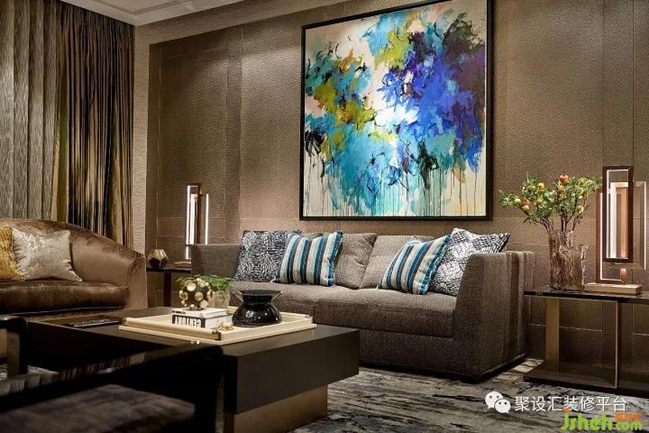 在別墅裝修中客廳設(shè)計(jì)中設(shè)計(jì)師兼顧實(shí)用的同時(shí),賦予適合主人的審美情趣,提升空間的精神內(nèi)函是設(shè)計(jì)的責(zé)任,也體現(xiàn)客人的審美眼光。在空間中加入了紐約畫家Carlos Ramirez、法國畫家Jean Francois Larrieu的藝術(shù)掛畫,賦與空間色彩張力和藝術(shù)價(jià)值,并成為客人居住空間的自我品味的獨(dú)特標(biāo)簽。