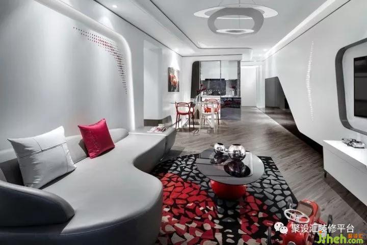 流暢的弧線形,酷炫的金屬感,醒目的大紅色。整個(gè)客廳的設(shè)計(jì)給人視覺感官的第一印象,是熱情與活力。年輕一代在快節(jié)奏的生活里,用各種引領(lǐng)潮流的元素去釋放生活的張力。漂移,加速度,在這個(gè)快速轉(zhuǎn)換的時(shí)代里活出自我,才符合當(dāng)下對(duì)于生活追求的新定義。