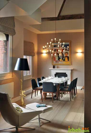 編輯點(diǎn)評(píng):這間頂樓公寓設(shè)計(jì)上不愧是“麻雀雖小,五臟俱全”,何以見(jiàn)得?除了中部大小沙發(fā)的搭配得以滿足待客需求,用餐區(qū)里,餐桌也是為多人用餐準(zhǔn)備的,可見(jiàn)這并不只是一間溫馨的小屋。燈飾上,大吊燈與壁燈也為用餐區(qū)營(yíng)造了舒適的氛圍。同時(shí),設(shè)計(jì)師也充分利用空間,在此處安置了休息椅,讓主人放后得以在此閑聊。將休息椅圍在此處,也是空間的軟隔斷。