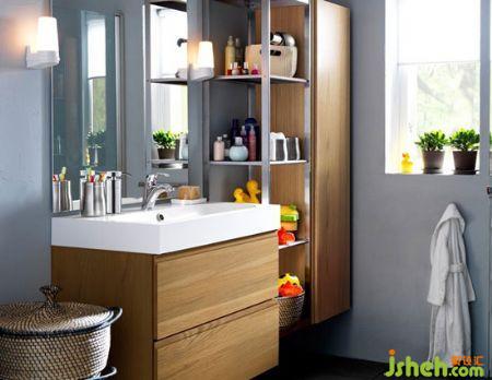 在墻上鑿開格子做入墻式的收納柜,是現(xiàn)在不少浴室裝修的新選擇。一些肥皂化妝品等小體積的物品也可以借助收納筐放置在這些柜子之中。