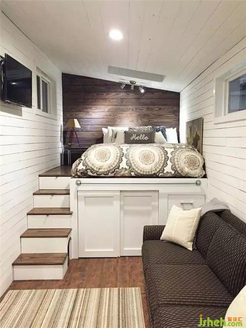 如果室內(nèi)設(shè)計(jì)師有設(shè)計(jì)巧思,在深圳裝修設(shè)計(jì)中像下圖的設(shè)計(jì)也很酷,直接把床橫在入門處的上方,電視get、書架get、梯子get、收納柜get,空間雖小,卻一應(yīng)俱全。