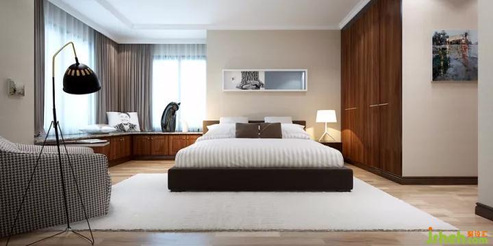 選擇和你的別墅裝飾臥室地板相近的色系的衣柜,或選擇跟你的床相近的色系的衣柜,視覺感受上保持和諧,不至于太過突兀。