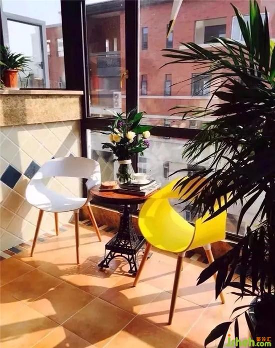 深圳裝修設(shè)計中不同色系、不同款式的木紋磚,讓戶外陽臺變成一個簡樸安寧的空間。