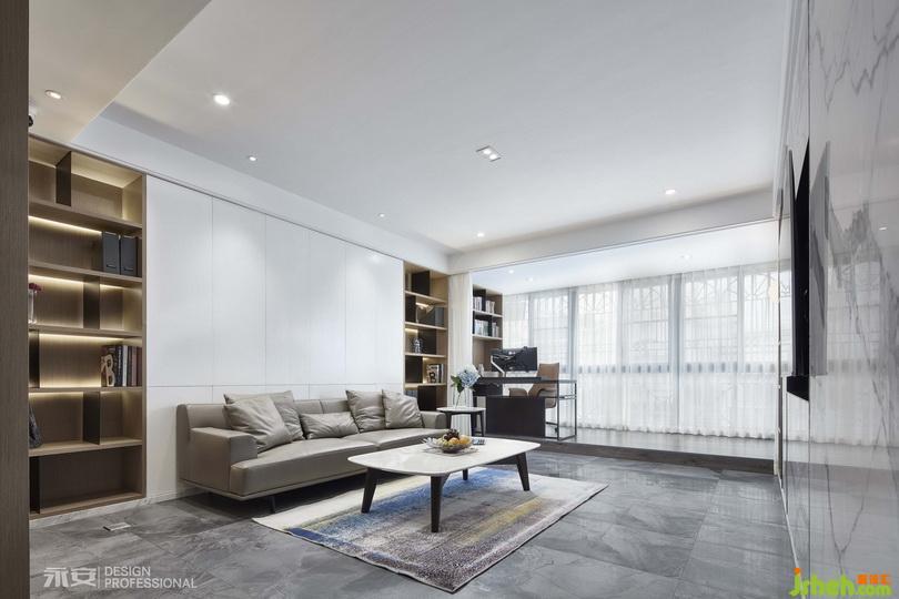 磨砂玻璃+亞光小五金件+灰色色調(diào)+直線構(gòu)成。大量的磨砂玻璃的使用,既劃分了功能空間又不減少通透;與磨砂玻璃效果相伴而生的配飾是亞光小五金件;灰色主調(diào)能使整個空間襯托出主人五彩繽紛的小飾品,直線為主的空間構(gòu)成則是現(xiàn)代人生活節(jié)奏的最佳體現(xiàn),如若需要可用局部曲線增加些許家的“柔情蜜意”。室內(nèi)設計師