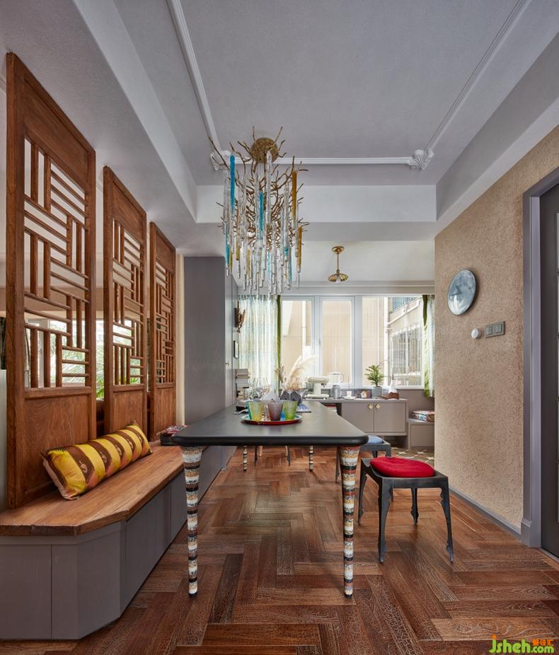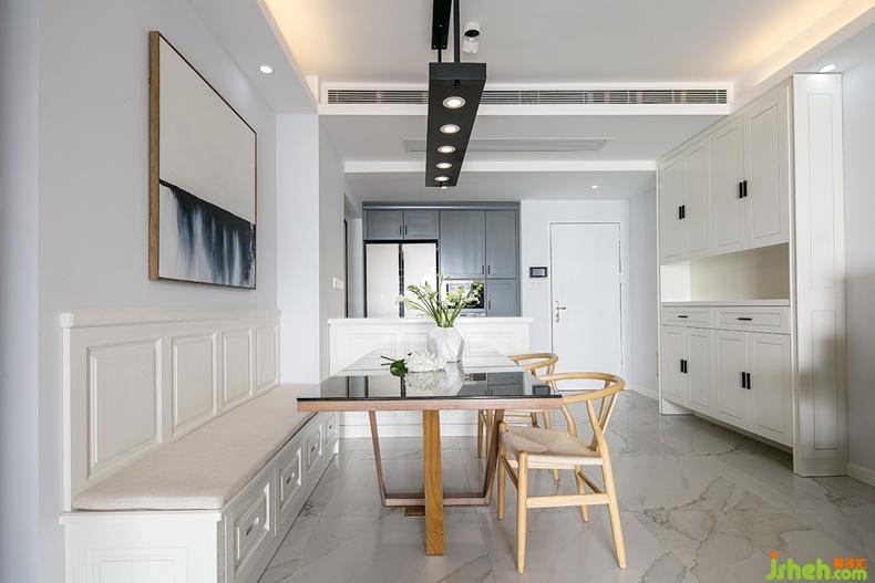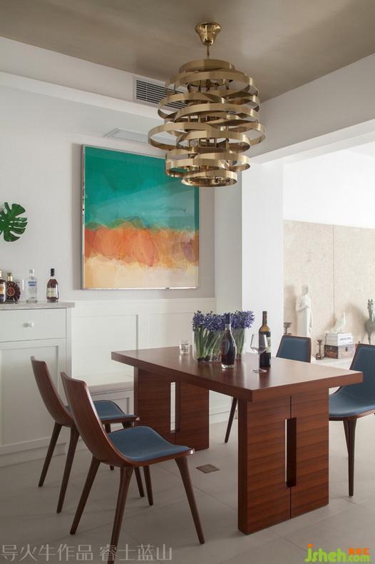 3、餐廳設(shè)計(jì)色彩搭配也要注重整體感。墻面可用中間色調(diào),天花板色調(diào)則淺,以增加穩(wěn)重感。在不同的時(shí)間、季節(jié)以及心理狀態(tài)下,人們對(duì)色彩的感受會(huì)有不同的感覺(jué)。這時(shí),可利用燈光作為輔助手段來(lái)調(diào)節(jié)室內(nèi)色彩氣氛,以達(dá)到利于飲食和愉悅身心的目的。比如,燈具選用白熾燈,經(jīng)反光罩反射后以柔和的橙色光映照室內(nèi),形成橙黃色環(huán)境,能有效消除死氣沉沉的低落感。寒冷的冬夜,如選用燭光色彩的光源照明或橙色射燈,使光線集中在餐桌上,也會(huì)產(chǎn)生溫暖的感覺(jué)。