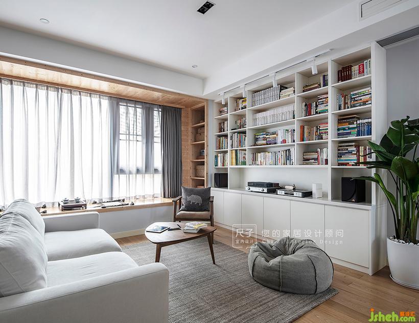 斜屋頂客廳空間,墻面低矮而不規(guī)則,依照墻面定制書(shū)架,擺上滿滿的書(shū)籍,將不規(guī)則的墻面充分利用,既節(jié)省空間又美觀雅致,取用方便,最上面的部分踮踮腳尖即可,滿足愛(ài)讀書(shū)的你。設(shè)計(jì)公司