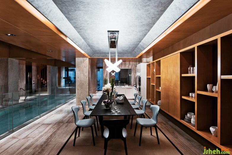 作品簡介:這是中國深圳一個地產(chǎn)發(fā)展商新樓盤的別墅樣板房。五層樓的獨立別墅占地1500平方米,香港裝修設計參照傳統(tǒng)中國四合院的空間規(guī)劃作了嶄新的演繹。每層樓具有不同的功能區(qū),圍繞中央的”庭院”來布局,上有天幕,下有泳池,雖在室內(nèi)亦有天空,綠水,林木和星月的美景,讓住戶生活在大自然的包圍之中。