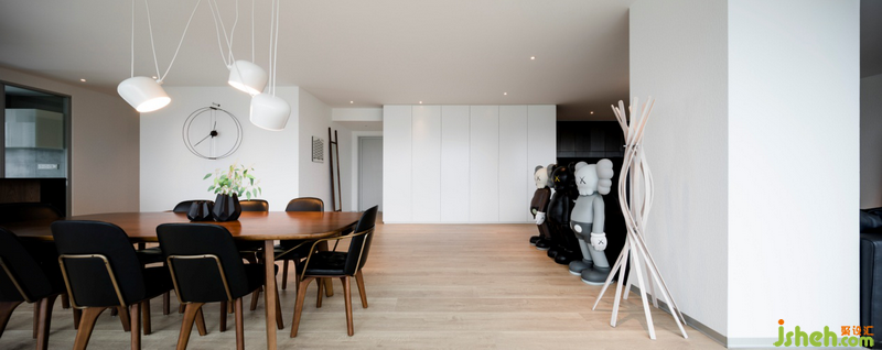 作品簡介:業(yè)主是一對85后年輕夫婦,從事時尚電商行業(yè)。女主人擁有許多名貴包包,男主人喜歡玩偶和潮牌收藏。兩人生活上崇尚簡單舒適,對于愛巢的構思獨具品位。滿懷對家的憧憬他們多次找尋期許的設計風格,卻鮮有相中,直至發(fā)現(xiàn)室內(nèi)設計師方磊,雙方審美訴求十分契合,于是便開啟了一場愉悅的合作之旅。明亮的光線傾灑于桌面,讓餐廳充滿愜意。休息區(qū)作為聯(lián)接餐廳與廚房的紐帶,沿立柱兩側(cè)依勢打造等寬吧臺而成,既規(guī)避原始結(jié)構中立柱的限制,又呈現(xiàn)就餐環(huán)境的多樣體驗。